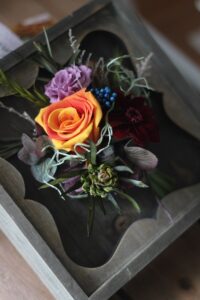 はじめての方でも1日(3〜4時間)でブーケが制作可能。枯れないお花で記念に残せるオリジナルブーケが完成します。お祝い、贈呈品やウェルカムアイテムも多数ご用意しております。