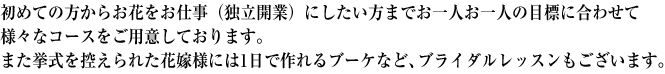 また、挙式を控えられた花嫁様には1日で作れるブーケレッスンもございます。